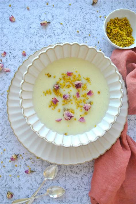 Die Zubereitung könnte nicht einfacher sein und benötigt nur ein paar Minuten Zeit. Du benötigst Milch, Zucker, Maisstärke, Rosenwasser, Kardamompulver und gehackte Pistazien. Zur Dekoration verwende ich sehr gerne getrocknete Rosenblüten, weil sie unglaublich hübsch aussehen und dem einfachen Dessert den verführerischen Glanz verleihen. Das ist aber natürlich absolut optional. Rosenblüten und Rosenwasser bekommst du übrigens häufig in indischen oder asiatischen Supermärkten.
