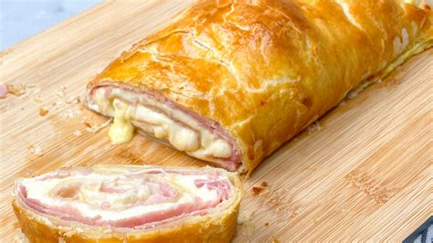 - Füllen und Rollen: Die Creme auf die Hälfte der Teig-Fläche dünn aufstreichen, dabei jeweils einen Rand von 4 Zentimetern übrig lassen. Optional darüber 4 TL Rhabarber Chutney auftragen. Nun die Seiten und den Anfang einklappen und den Strudel mit dem Tuch locker aufrollen.