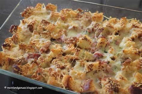 Grundrezept für Brotauflauf mit Schinken und Käse