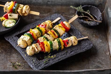Ein Klassiker sind gemischte Gemüsespiesse, etwa gewürfelter Feta mit in Zitronenöl marinierten Zucchettischeiben.