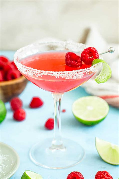 Alle Zutaten in einen elektrischen Mixer geben und mit viel Eis blenden/mixen. So entsteht ein halbgefrorener Drink. Diesen in eine gekühlte Cocktailschale giessen und mit frischen Himbeeren dekorieren.