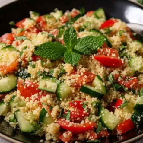 Der Couscous-Salat kann warm oder kalt serviert werden und ist ideal für ein Picknick, ein Mittagessen im Büro oder als Beilage zum Grillen.
