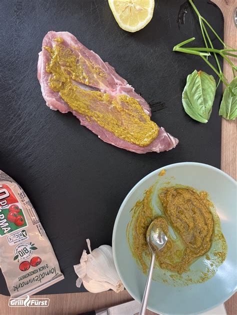 Tipp: Die Marinade passt besonders gut zu weissem Fischfilet, aber auch zu Trutenfilets oder -steaks.