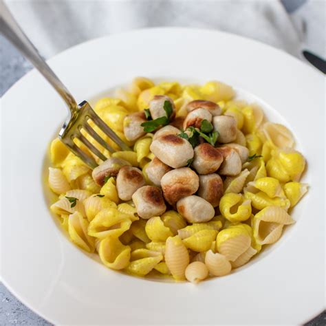 Brätkügeli an Currysauce mit Pasta: Eine Abwandlung des Rezepts ist die Zubereitung mit Brätkügeli statt Steaks. Die Brätkügeli in einer Pfanne anbraten und zusammen mit der Curry-Sauce und Pasta servieren.