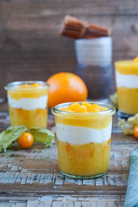 - Sahne mit Vanillezucker steif schlagen. Mascarpone mit Honig, Orangenabrieb und Zimt cremig rühren und Sahne unterstellen. Im Kühlschrank kühl stellen.