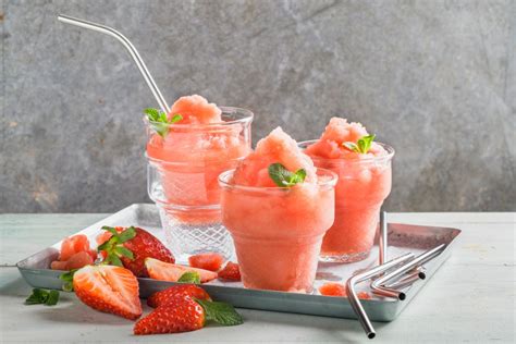 | Wassermelonen-Erdbeer-Frosé | Roséwein, Wassermelone, Wasser, Zucker, Minze, Erdbeeren |