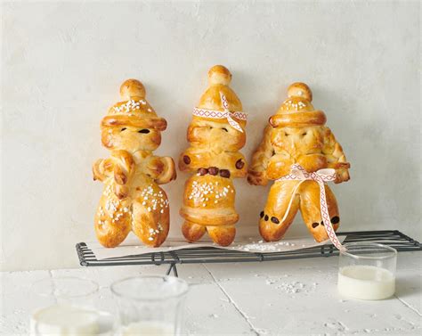 Backofen auf 200 °C Unter-/Oberhitze vorheizen. Ei verquirlen und Figuren damit bestreichen. Weinbeeren als Augen in den Teig drücken. Grittibänze in der Ofenmitte ca. 30 Minuten backen. Herausnehmen.