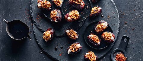 - Datteln mit wenig Frischkäse füllen, mit Pfeffer bestreuen.
