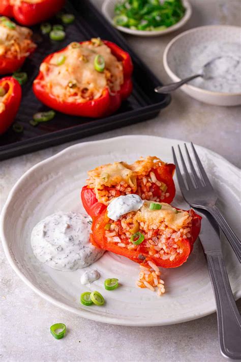 - Im Ofen für 30 Minuten backen, bis die Paprika durchgegart sind.