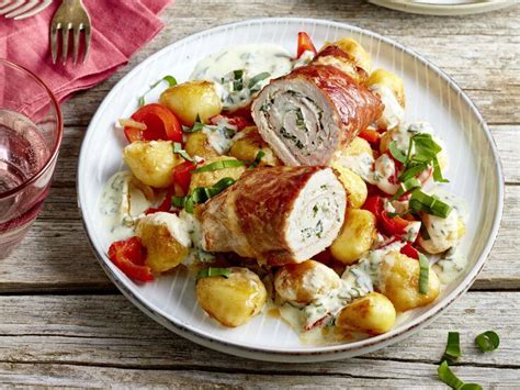 Ob man für diese knusprigen Röllchen Schnitzel vom Schwein, Kalb oder Poulet verwendet, ist Geschmacksache. Auch beim Frischkäse hat man die Wahl: Es kann genauso gut der «schlanke» Ricotta oder Blanc battu sein wie ein Ziegen- oder Doppelrahmfrischkäse.