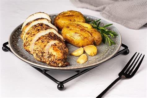 Kartoffeln und Hähnchenbrust mit Knoblauch und Butter. Einfaches und leckeres Gericht!