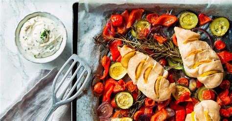 Hier ist ein weiteres leckeres Rezept für überbackene Hähnchenbrust auf Gemüse, das reich an Eiweiss und arm an Kohlenhydraten ist: