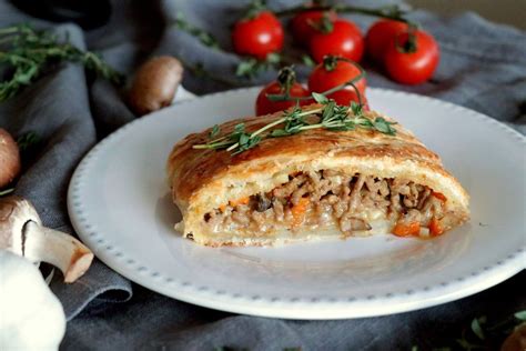 Blätterteigstrudel mit Hackfleisch, Gemüse und Mozzarella