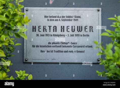 An der Kantstrasse erinnert eine kleine Tafel daran, dass Herta Heuwer 1949 mit der Kreation einer scharfen Sauce die Basis für die heute bekannte Currywurst legte. Am 4. September 1949 hat Herta Heuwer, eine Berliner Imbissbetreiberin, die Currywurst erfunden. So lautet die geläufigste Version der Geschichte. Herta Heuwer wäre heute 100 Jahre alt geworden und eine Berliner Legende besagt, sie habe vor 64 Jahren die Currywurst erfunden.