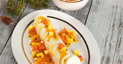 Diese erfrischende Terrine ist perfekt für warme Tage. Sie besteht aus einer cremigen Joghurtmasse, die mit Zitrone und Holunderblütensirup verfeinert wird. Das exotische Fruchttopping sorgt für eine zusätzliche Geschmacksexplosion.