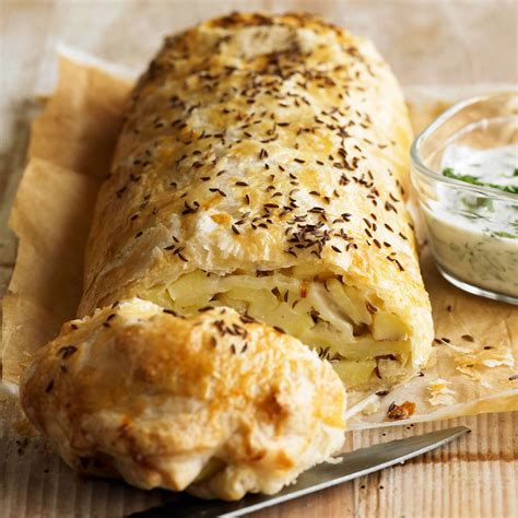 Vegetarischer Blätterteigstrudel mit Kartoffeln und Kümmel