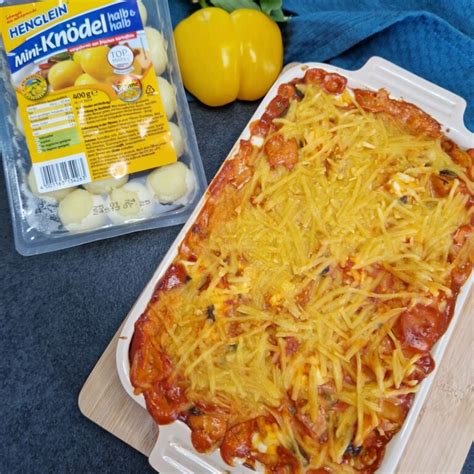| Mini-Knödel-Auflauf | Mini-Knödel, Halbrahm, Reibekäse | Einfache Zubereitung, viel Gemüse |