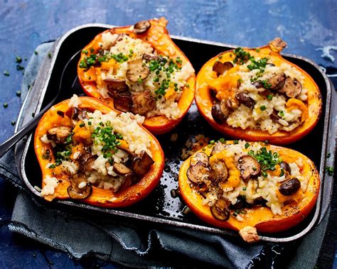 - Pikant gefüllter Mandarinkürbis: Die Kürbisse entkernen und mit einer cremigen Füllung aus Möhre, Paprika, Schalotten und Feta füllen. Die Füllung mit Creme fraîche vermischen und mit Salz und Pfeffer würzen. Anschließend die Kürbisse in eine Auflaufform legen und bei 175 °C (Umluft) für etwa 30 Minuten backen.