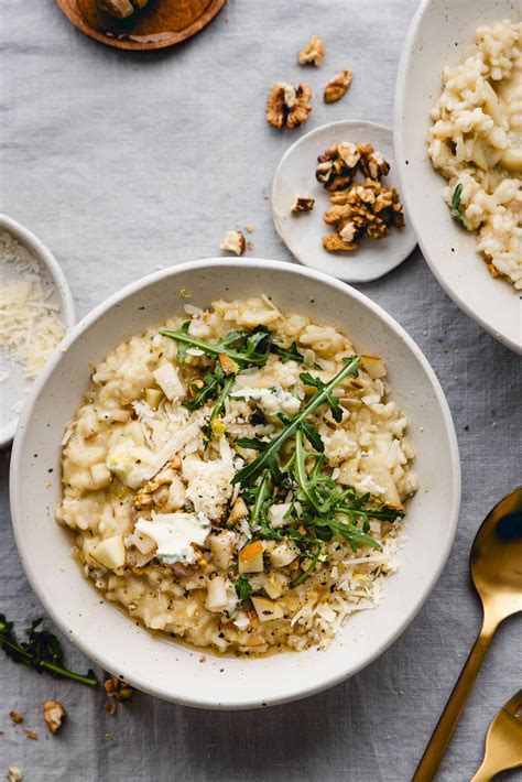 Risotto-Variationen mit Gorgonzola, Birne und Baumnüssen