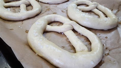 - Brezel auf ein mit Backpapier belegtes Blech legen, ca. 20 Min. aufgehen lassen.