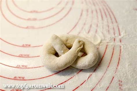 - Nach dem Formen das Gebäck nochmals zugedeckt beiseite stellen, bevor es mit der Lauge behandelt wird.