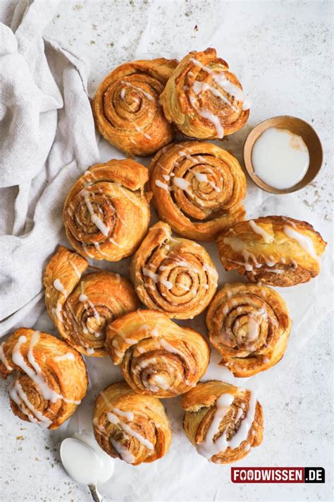 Eine weiter Möglichkeit besteht darin, die Zimtschnecken nach dem Backen mit einer Glasur zu überziehen. Dazu eignet sich eine Puderzuckerglasur oder eine Glasur mit Frischkäse.