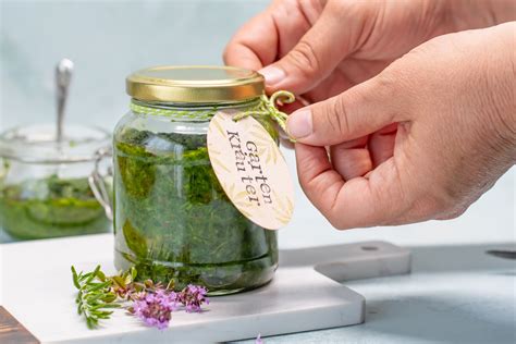 - Giessen Sie kaltgepresstes Distel- oder Olivenöl bzw. hochwertigen Wein- oder Obstessig darüber, bis die Kräuter bedeckt sind.