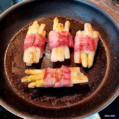 - In einer großen Pfanne reichlich Butterschmalz oder Öl erhitzen und die Spargelpäckchen darin goldbraun braten.