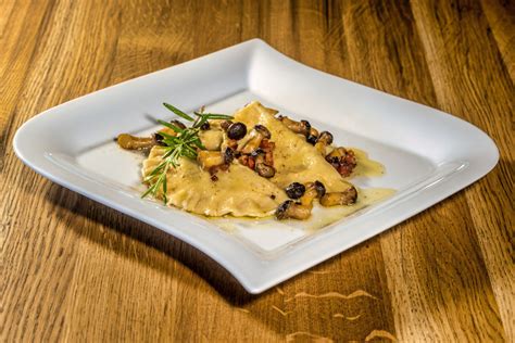 - Ravioli mit der Schaumkelle herausheben und auf vorgewärmten Tellern anrichten. Pilze darüberverteilen.