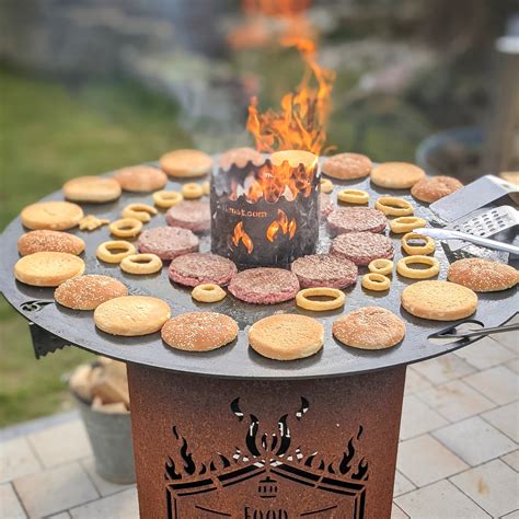 Der Vorteil einer Feuertonne ist, dass man leicht eine Feuerplatte anbringen und darauf grillen kann. Grillrückstände können einfach in die Flammen geschoben werden, was die Reinigung erleichtert.