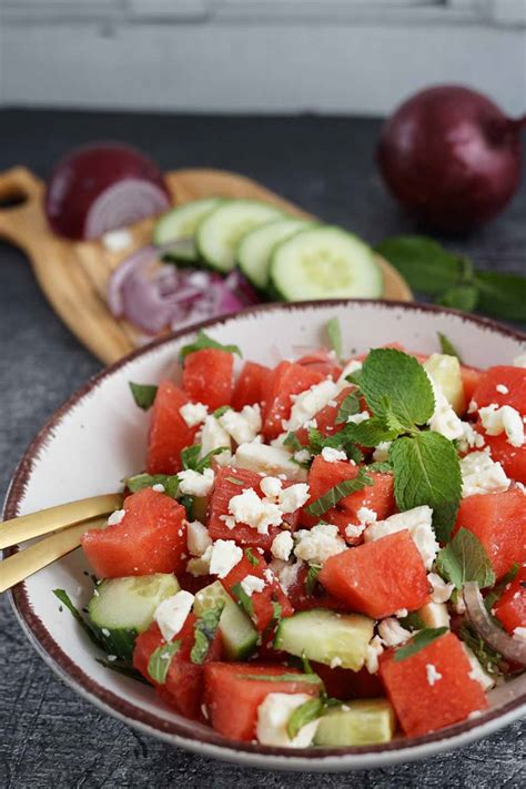 - Die Schlangengurke waschen, schälen, entkernen und würfeln.