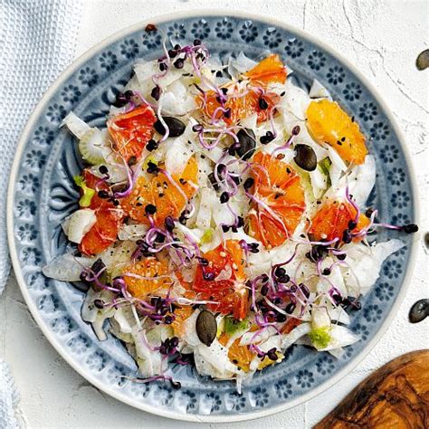 Erleben Sie die frische Knackigkeit und den herrlichen Geschmack eines Fenchelsalats mit Blutorangen! Diese lebendige Kreation vereint das einzigartige Knuspern von Fenchel mit der süßen, intensiven Explosion von Blutorangen und zaubert einen Wintersalat, der nicht nur köstlich nahrhaft ist, sondern auch optisch beeindruckt.