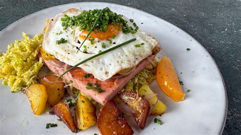 Für eine moderne Interpretation des Leberkäses empfiehlt sich der Leberkäse-Burger mit Schmorzwiebeln und Rüeblislaw. Dieser Burger kombiniert herzhaften Leberkäse mit süßen und würzigen Aromen.