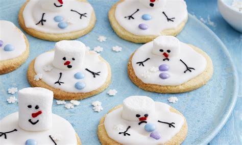 Sie teilen sich in mehrere Kategorien: Kekse mit Marshmallow-Köpfen, Schneemann-Kekse mit Zuckerguss, und Kekse mit Fondant-Dekoration.