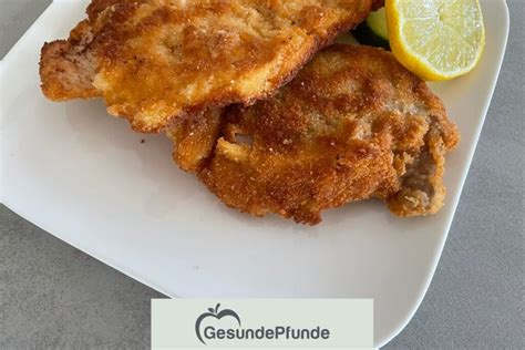 Paniere das Schnitzel genauso, wie wir es anfangs erklärt haben. Du kannst es auch vorher anbraten, um das Ergebnis knuspriger zu machen, aber dann hat es auch wieder mehr Kalorien. Zwei Minuten je Seite reichen hierbei vollkommen aus, dann noch 6 bis 8 Minuten im Ofen.
