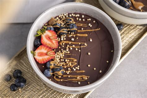 Für alle Naschkatzen ist dieses vegetarische Bowl-Rezept ideal. Mit seinem schokoladigen Geschmack kann die Bowl auch als leichtes Dessert serviert werden.