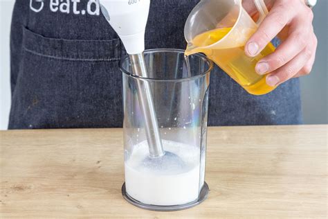 Hier ist ein einfaches Rezept, um eine leichte Mayonnaise mit Senf selbst herzustellen:
