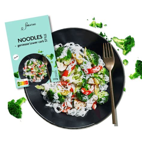 Shirataki-Nudeln, auch bekannt als Konjak-Nudeln oder Wundernudeln, sind eine ausgezeichnete kohlenhydratarme Alternative zu herkömmlichen Nudeln. Sie werden aus der Konjakwurzel hergestellt, einer in Asien beheimateten Pflanze, deren Wurzeln zu einem hochabsorbierenden Pulver gemahlen, mit Wasser vermischt und zu Nudelstreifen geformt werden. Ähnlich wie normale Nudeln haben Konjak-Nudeln keinen ausgeprägten Eigengeschmack und sollten daher immer mit Sauce serviert werden.