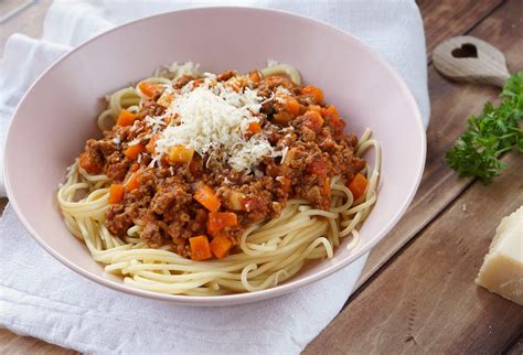 Hier finden Sie eine detaillierte Anleitung und Zutatenliste für die Zubereitung von Spaghetti Bolognese mit Zucchini und Karotten.