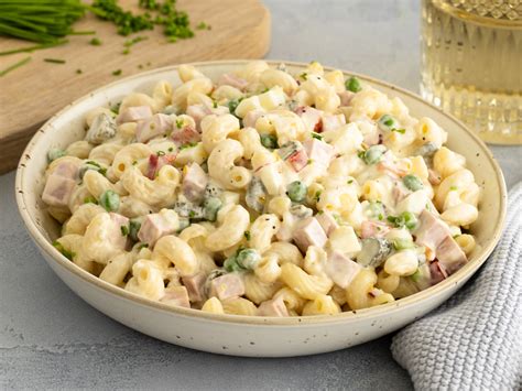 Es gibt zahlreiche Varianten und Abwandlungen der Spaghetti Carbonara. Den Joghurt mit der Mayonnaise vermengen. Kochschinken in kleine Stücke schneiden. Dressing, Nudeln und alle weiteren Zutaten in einer Schüssel vermengen und am besten über Nacht durchziehen lassen.