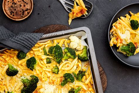 - Währenddessen das Saucenpulver mit der Milch aufkochen und den geriebenen Gruyère unterrühren. Mit den Gemüse-Spätzli mischen und servieren.