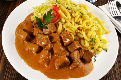 Als Alternative zu Spätzle mit Gemüse kann man auch einen herzhaften Rindergulasch dazu servieren. Hier ist ein einfaches Rezept für ungarischen Rindergulasch mit Spätzli: