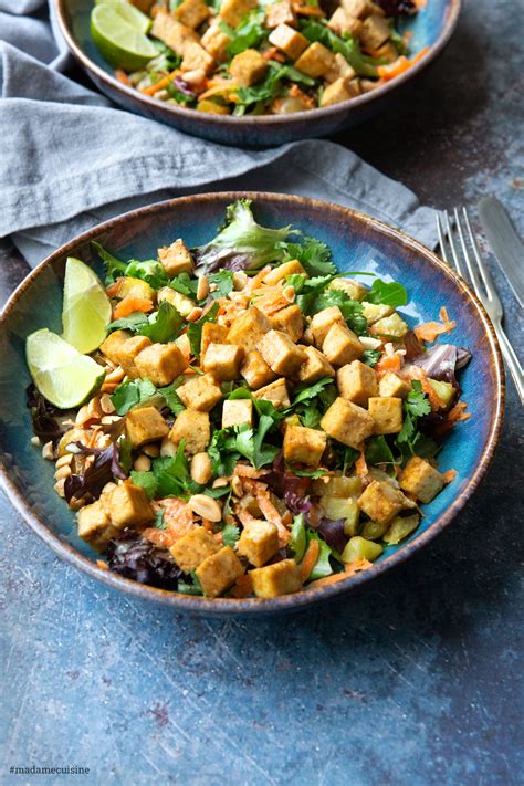 Dieser vegane Salat mit Tofu ist eine hervorragende Wahl für eine leichte und nahrhafte Mahlzeit. Er ist einfach zuzubereiten und bietet eine köstliche Kombination aus frischen Zutaten und herzhaftem Tofu. Ideal für Veganer und alle, die sich gesund ernähren möchten.