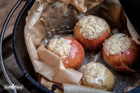 Nun geht es nur noch darum, den Bratapfel zu grillieren. Am besten regelst du deinen Grill dafür auf 180-200 °C indirekte Hitze. Je nach Dicke brauchen die Äpfel nun 20-30 Minuten, bis sie weich sind und verführerisch duften. Du kannst den Bratapfel auch auf dem Rost grillieren. Dann wählst du niedrige direkte Hitze und wendest die Frucht ab und zu (aber nicht auf den Kopf stellen, sonst läuft die Füllung heraus).