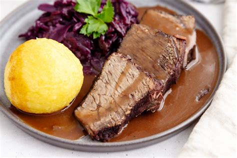 - Süss-saurer Geschmack: Die Kombination von Essig, Wein und süssen Zutaten wie Rosinen oder Honig ist typisch für Sauerbraten.